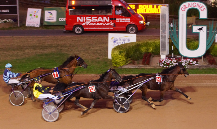 Spectacle comme magnifique arrivée de la 4ème hier soir jeudi entre Diane Soyer drivée par Sébastien Hardy qui résiste à Damien Héon et Déesse de Corday alors que Christophe Clin tente de s'emparer de la 2ème place avec Daisy d'Auvrecy..